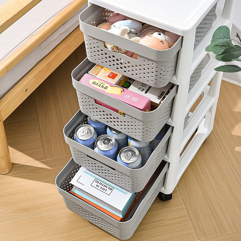 Cajonera de almacenamiento de plástico extraíble de cuatro niveles personalizable, fácil de empujar y tirar con asa de logotipo