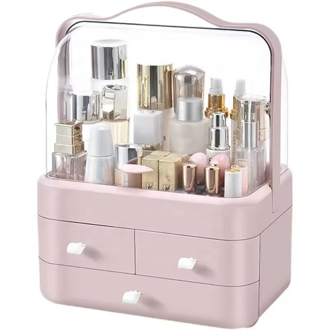 Organizzatore di Lusso per Prodotti Skincare con 2 Cassetti e Coperchio Trasparente Antipolvere, Scatola di Plastica per Conservazione Cosmetici